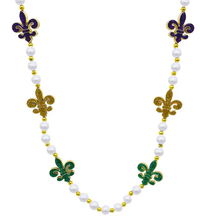 40" Purple, Green and Gold Glitter Fleur de Lis Pearl Necklace